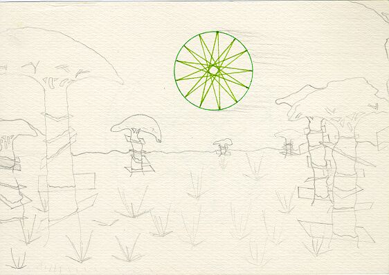 There are trees with plates made of glass through woods. It's a quite strange picture for which I was too lazy to finish it. |