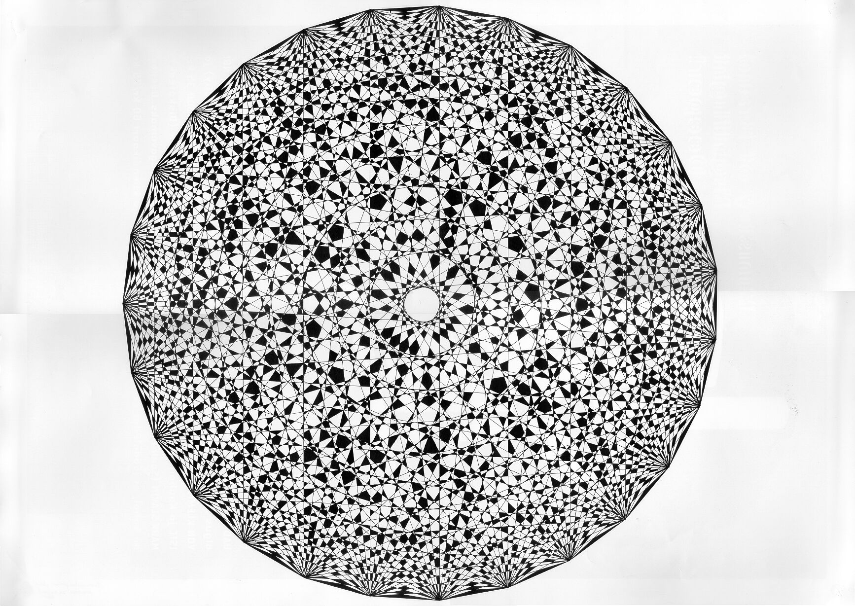 My first A2-sized picture. The headline could also be more mathematical: "Best elements of the factorring". I wanted for a long time to make a picture of that kind, the background of this picture is a full graph with 27 vertices. Unfortunately there are about 10 mistakes in this picture because it is so big. As you can see I had to scan it in four pieces. Click the picture to see a larger and clearer version (584 KB). |