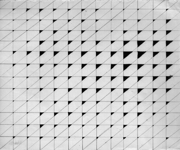| Kommentaar / Comments | Tegelikult tahtsin teha midagi korrapärast, aga kui hakkasin tõmbama kaldjooni, ei läinudki need õigetest kohtadest läbi, kust ma arvasin, et nad peavad minema. Ja tekkinud kolmnurgad ma värvisin ära... Actually I wanted to make something more regular, but when I started lininig slopes thay didn't go through points where I thought thay should be. Then I just filled those triangles appeared... |