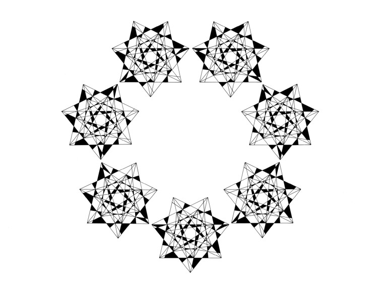 Principally, this picture is devoted to a beautiful (prime) number 7. I quite enjoy the strict and complicated order here! In some sense it represents my own world of thoughts.